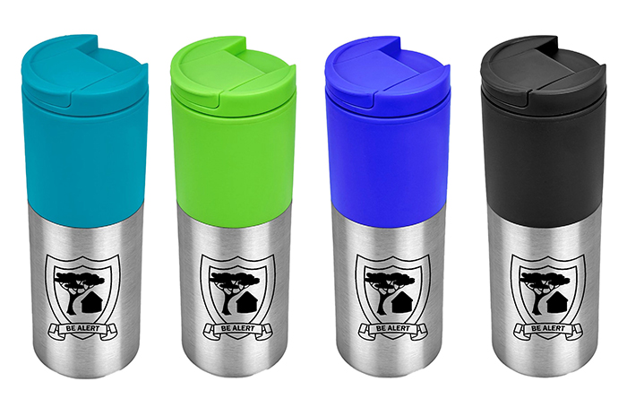 A stylish and durable double-wall tumbler with a stainless steel interior for temperature retention. Ideal for coffee, tea, or cold drinks on the move!